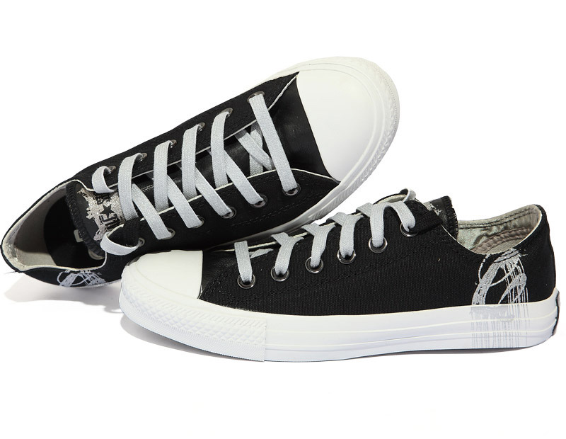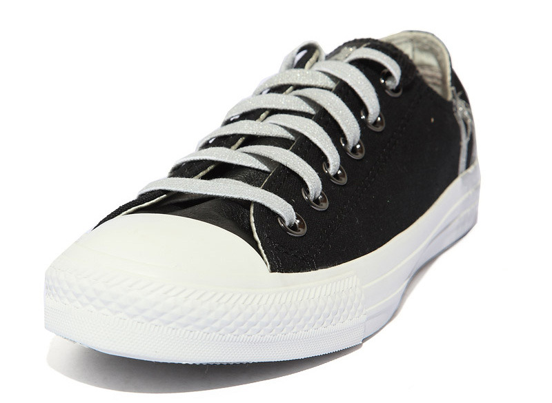 匡威all star黑/銀低幫綁帶帆布中性鞋