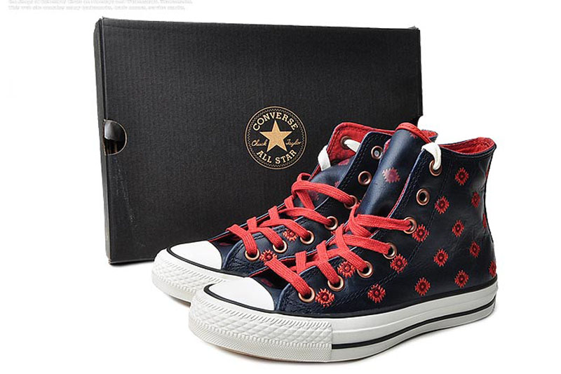 匡威Chuck Taylor深藍色/朱紅色/巧克力色高幫綁帶帆布中性鞋