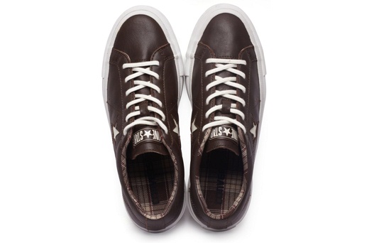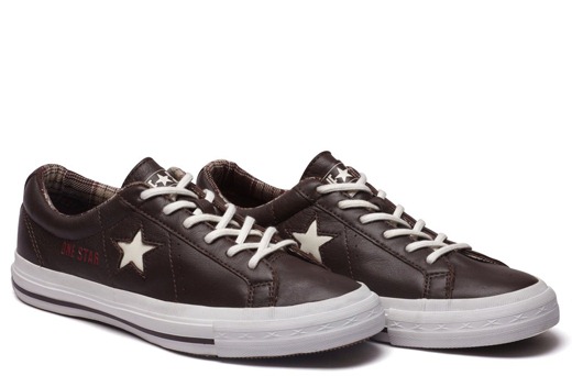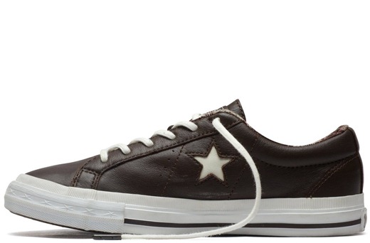 - 匡威One Star巧克力色/奶白色低幫綁帶牛皮中性鞋