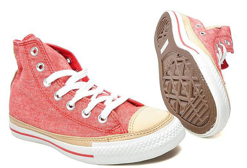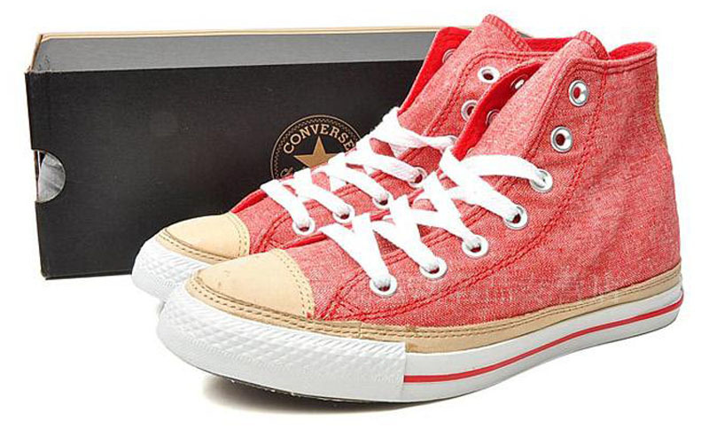 匡威All Star紅/深黃色高幫綁帶帆布中性鞋