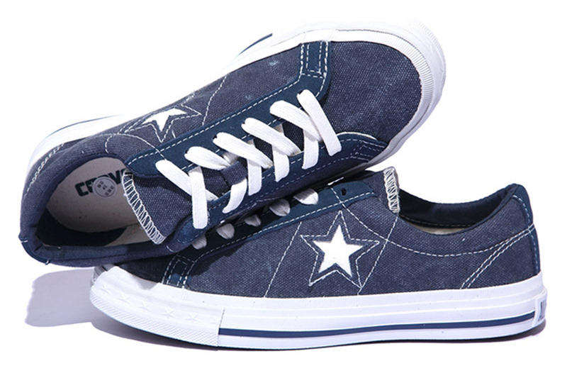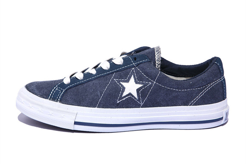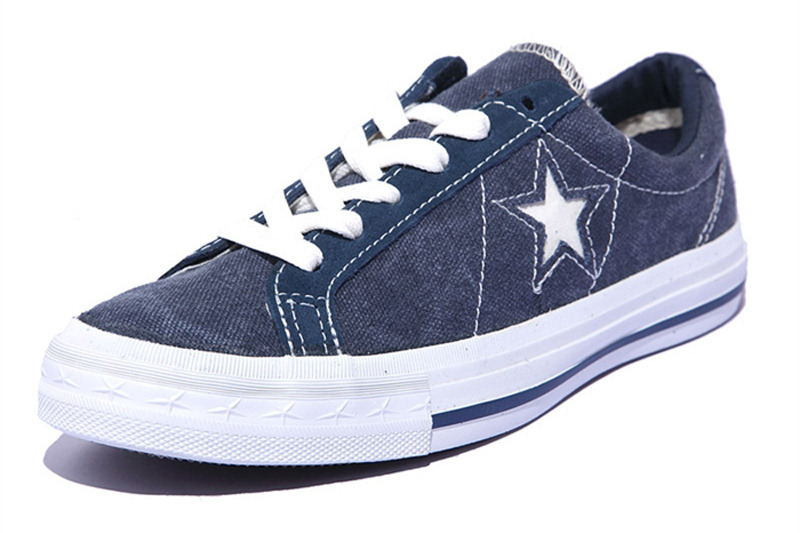 匡威One Star牛仔藍(lán)色/奶白色低幫綁帶帆布中性鞋