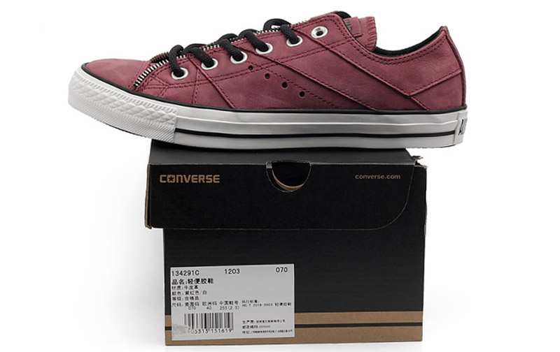 - 簡介:匡威134291-2013年新款134291不同優質牛皮裁片拼接而成的鞋面,配上金屬拉鏈的包邊設計,感覺好像穿在腳上的就是硬核感極強的機車皮夾克。低幫,牛皮,紫紅色/白暫無庫存,可加微信客服咨詢:CONSLVIE-COM