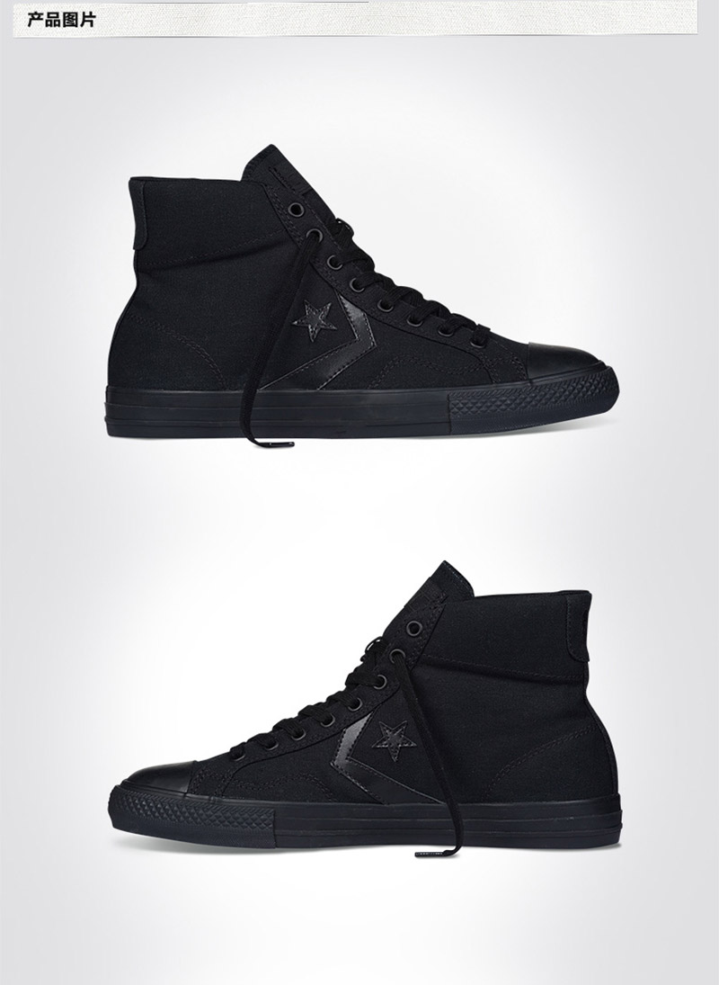 匡威輕便膠鞋黑色高幫綁帶帆布中性鞋