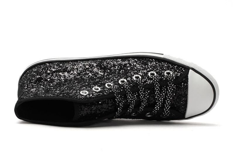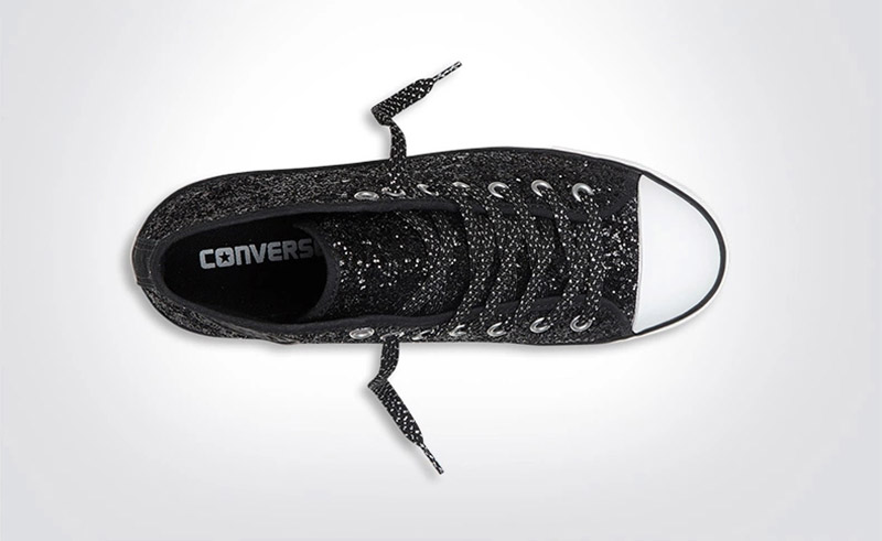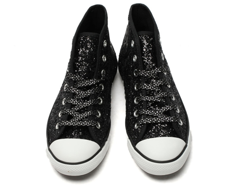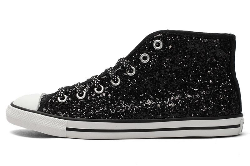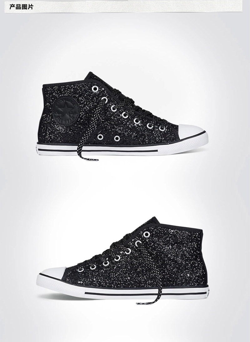 匡威544954-專為女性設計的Dainty鞋型,整體看上去較優雅和小巧秀氣。鞋面布滿亮片,低調中彰顯一絲華麗。精致包邊細節凸顯高級質感。彈性橡膠薄底,行走輕盈自在