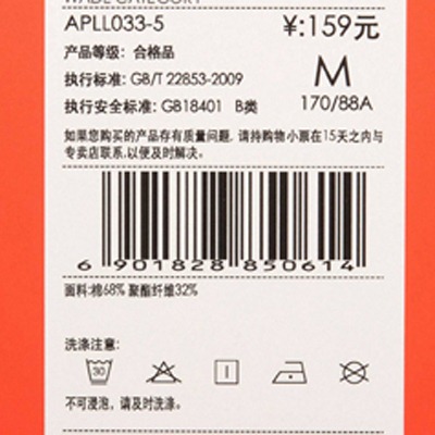 (4)清洗時不可使用漂白劑;